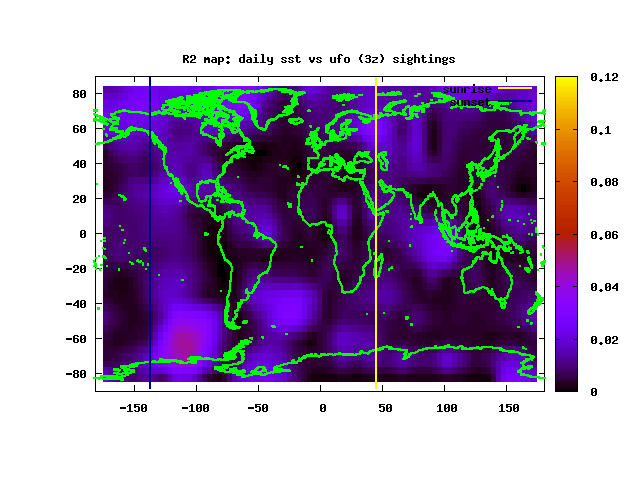 E.g. an area off Antarctica (lon -100), close to the rapidly-melting Pine Island Glacier (yes, scientists call it the P.I.G.), seems to wake up early just after the sunset line crosses over at 1z). The region gets more active in the early evening then goes back to sleep as dawn breaks around 13z.